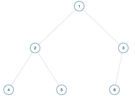 图1是一个二叉树,使用广度优先遍历的顺序应该是1、2、3、4、5、6。